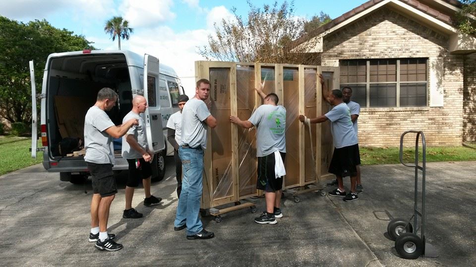 Great day! 9 guys 3 vehicle and a happy customer. 🙂 4 crates! Huge dining room table : 9’x6′ triple glass! Done! Thanks to our trained professionals! Small delivery or a huge job, MOVE THE RIGHT WAY —->>>> CALL HEADWAY!